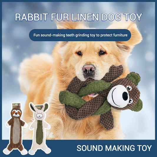 Burlap Dog Toy with Rabbit Fur – Fun & Durable