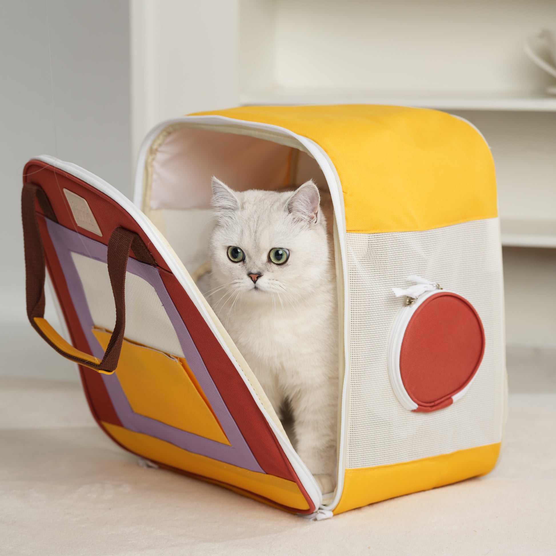 - The Little Color Box Pet Backpack is available in three vibrant colors, made from thickened Oxford fabric for extra durability and equipped with scratch-resistant ABS ventilation mesh to ensure your pet’s comfort.